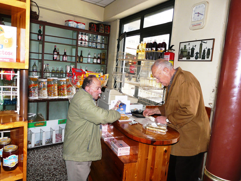 Είχε και μια αποθήκη τούτο το καφεκοπτείο, που τη σφράγιζε μια μεγάλη ασπρόμαυρη αφίσα, δείχνοντας έναν Βραζιλιάνο να κοσκινίζει τους κόκκους του καφέ. Πάντα, ωσάν παιδί μικρό που ήμουν, με εντυπωσίαζε τούτη η εικόνα, γιατί ήταν επιβλητική, και τη χαιρόμουν, με αποτέλεσμα όταν οι Αναλυταίοι έκλεισαν το καφεκοπτείο τους, να με θυμηθούν και να μου την κάνουν δώρο. Στη μηχανή του καφέ και περισσότερο στη λειτουργία του καταστήματος, ήταν ο Βαγγέλης, που λεπτολόγος στις κινήσεις του, δεν αργούσε να ταχτοποιήσει αυτό που του ζητούσες.
