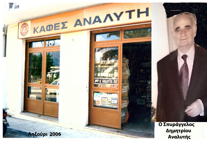 Μετά τους σεισμούς του ’53, τα δυο παιδιά του Δημητρίου, ο Σπυράγγελος και ο Ευάγγελος, (ο τρίτος αδελφός ήταν ο Θεόδωρος που έζησε στην Πάτρα) έφτιαξαν εκ νέου το καφεκοπτείο σε γωνιακό μαγαζί στα νοτιοδυτικά της κεντρικής πλατείας του Ληξουρίου.
